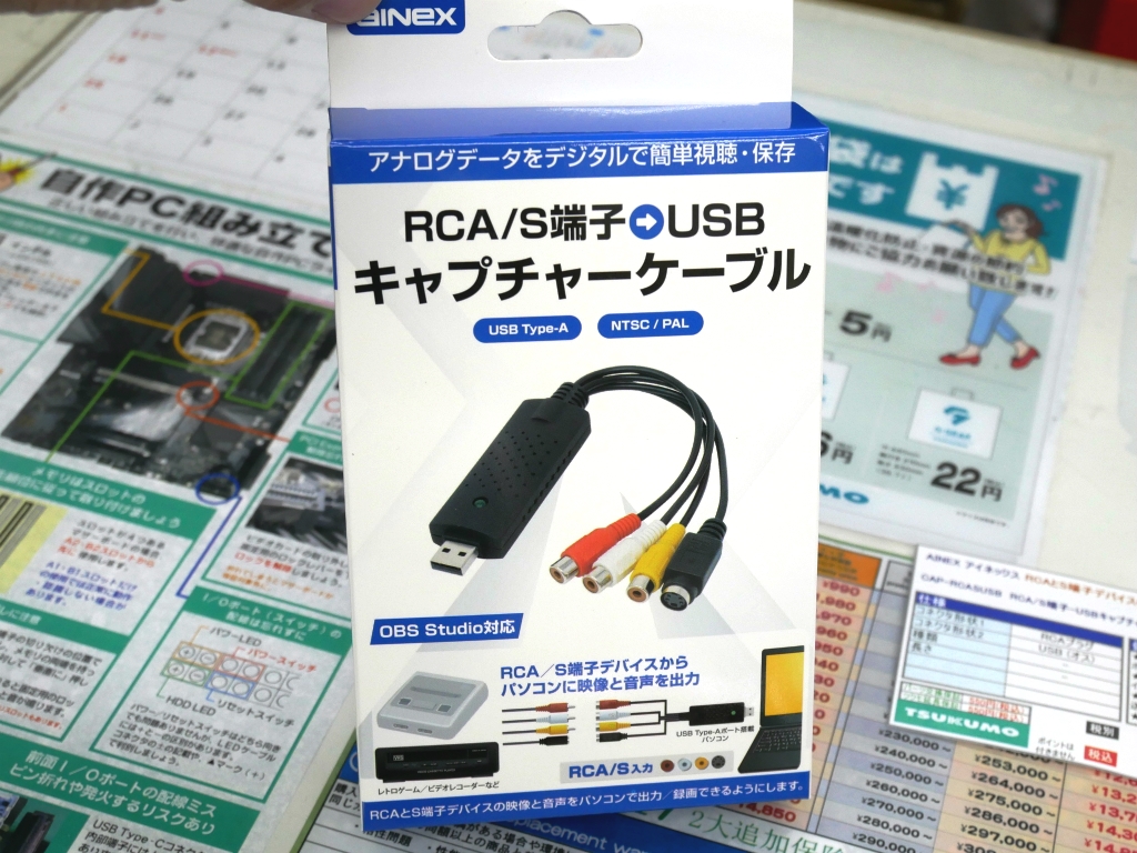 税込1,680円のRCA/S端子対応USBキャプチャケーブルがアイネックスから