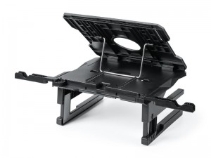 12°~41°までの20段階の角度調整機能や33/103/150mmの3段階の高さ調整、360°回転機構を備え、ノートPCの画面を最適な位置に調整可能。またスマートフォンスタンドやタブレットスタンド、キーボードなどの収納機能、ノートPC裏面のスペースを開けて熱こもりを防ぐスペーサーなどの機能を備える。