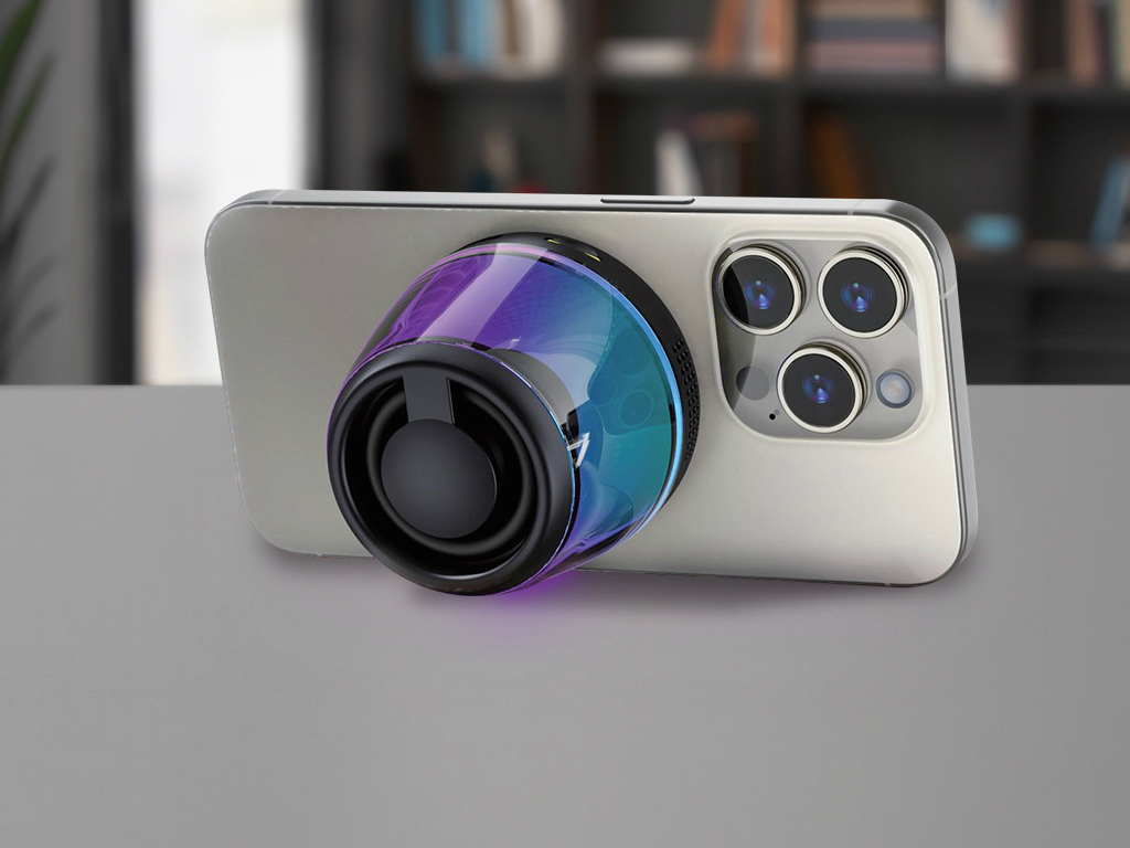 ゲオ、マグネットでスマホに貼り付く小型Bluetoothスピーカー