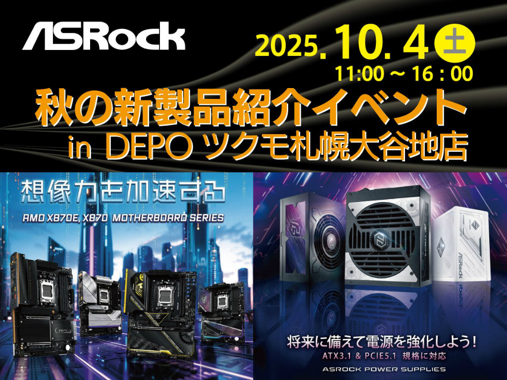 DEPOツクモ札幌大谷地店にて「ASRock 秋の新製品紹介イベント」10月4日(土)開催