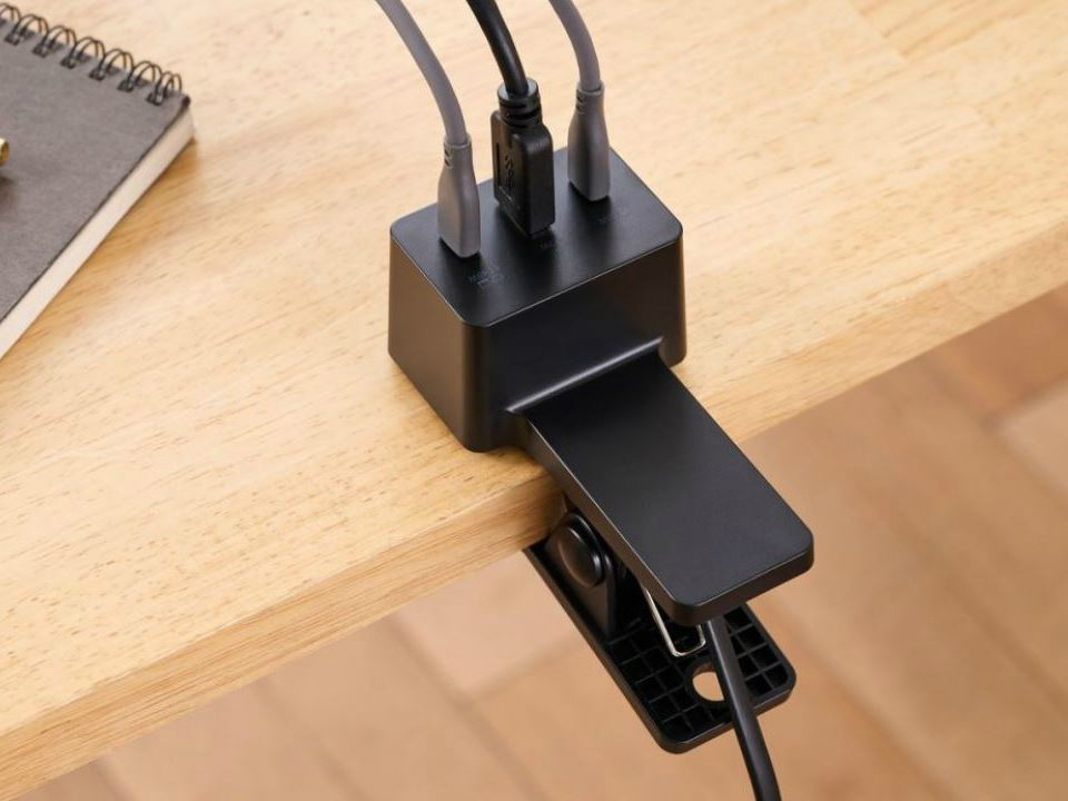テーブルやベッドに挟んで使えるクリップ固定式USB充電器がエレコムから