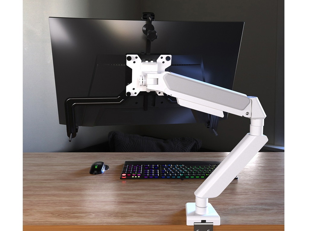 最大57型大画面ディスプレイに対応する、パソコン工房「ゲーミングモニターアーム」