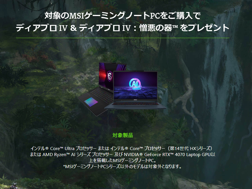 MSI、ゲーミングノートPCを購入すると「ディアブロ IV:憎悪の器」がもらえるキャンペーン