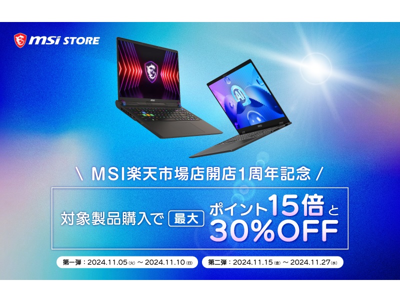対象ノートPCが最大30%引きになる「MSIストア楽天市場店オープン1周年記念セール」