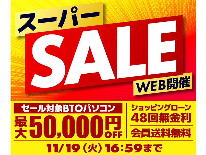 パソコン工房WEBサイト、対象BTOが50,000円引きになる「スーパーセール」開催中