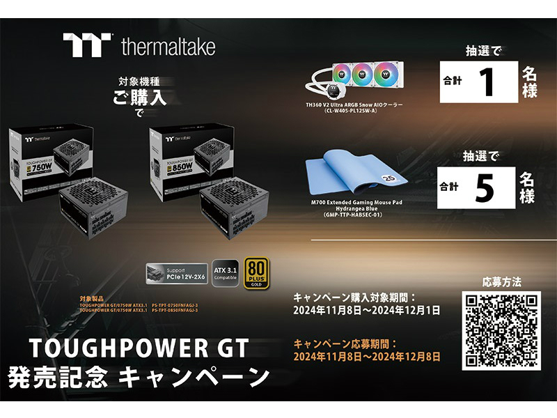 国内未発売のAIO水冷などが当たる「Thermaltake TOUGHPOWER GTシリーズ発売記念キャンペーン」