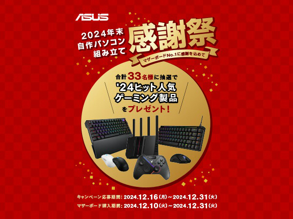 人気ゲーミングデバイスが抽選33名に当たる「2024年末ASUS自作パソコン組み立て感謝祭」