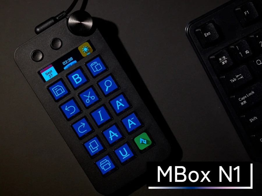 LCDボタンとダイヤルを備えたテンキー型のプログラマブルキーボード「MBox N1」