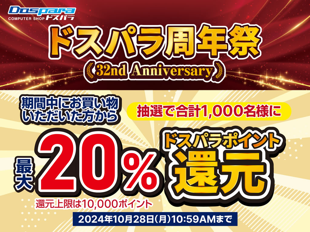32周年記念「ドスパラ周年祭」スタート。抽選で購入合計金額20%分のドスパラポイント進呈