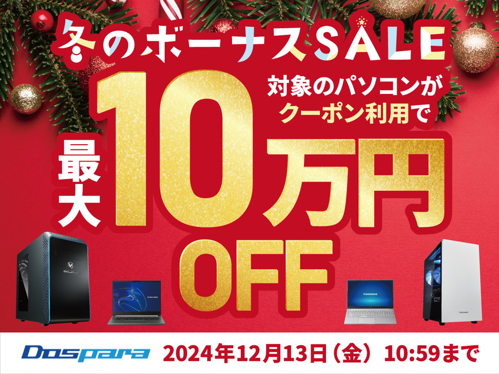 ドスパラ、ゲーミングPCやクリエイターPCが最大10万円引きになる「冬のボーナスSALE」開始