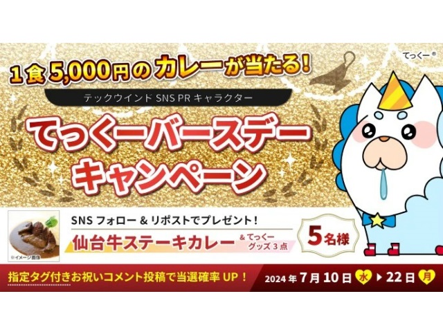 テックウインド、仙台牛ステーキカレーが当たる「てっくーハッピーバースデーキャンペーン」