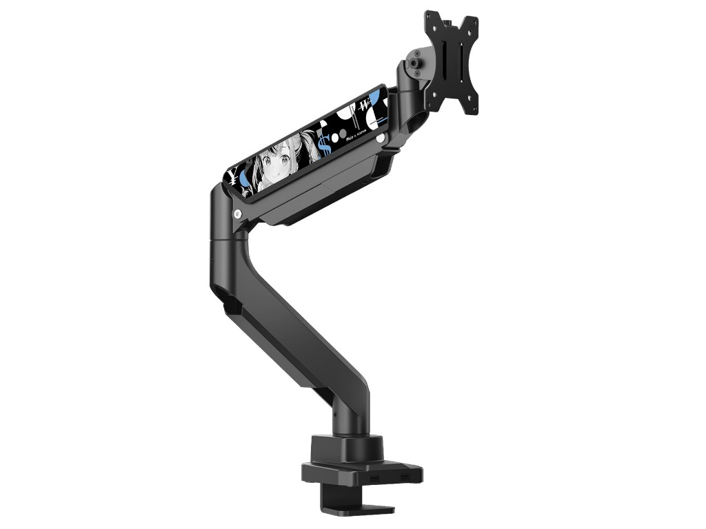 49型の大型ディスプレイに対応するガススプリング式ディスプレイアームがグリーンハウスから