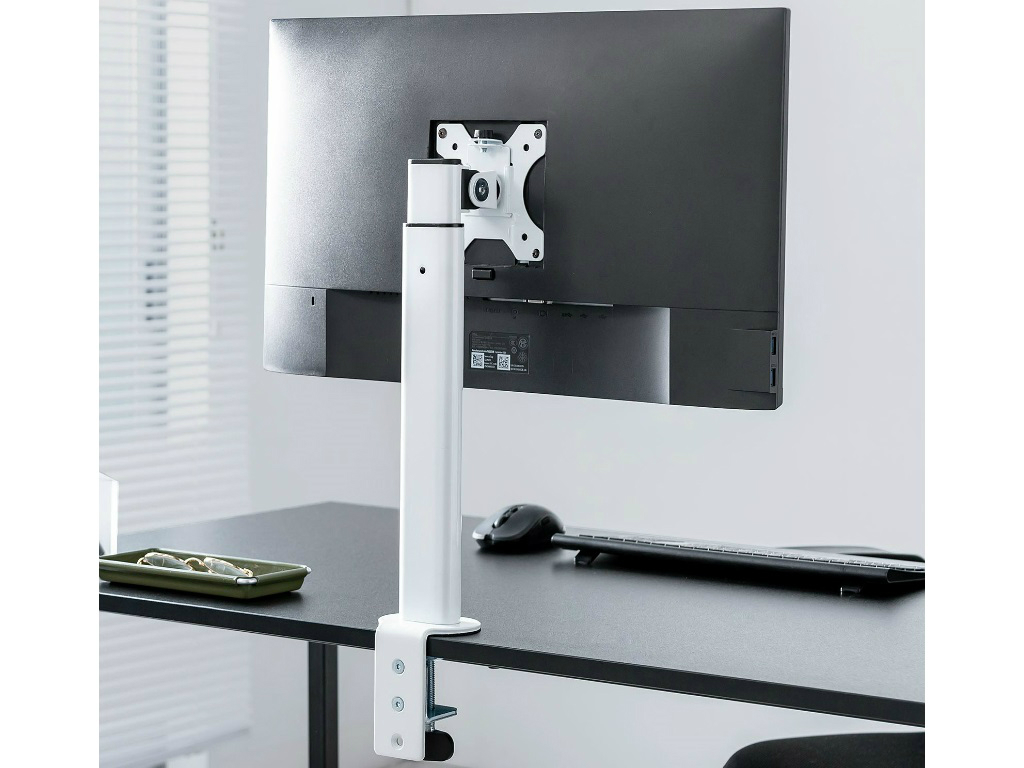 ホワイトカラーのクランプ式ディスプレイアームがサンワダイレクトから
