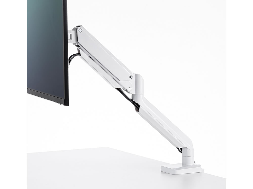 白色ディスプレイが似合う、ガス圧式/3関節のホワイトディスプレイアーム