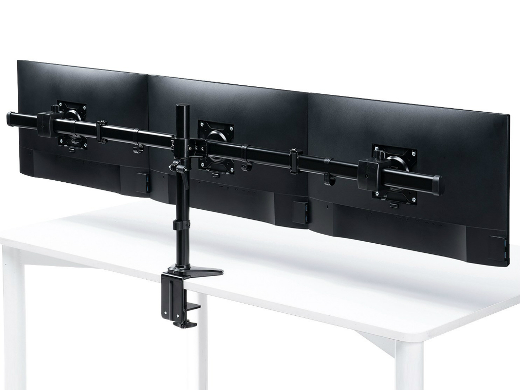 3台のディスプレイを横並びに設置できるトリプルディスプレイアームがサンワサプライから