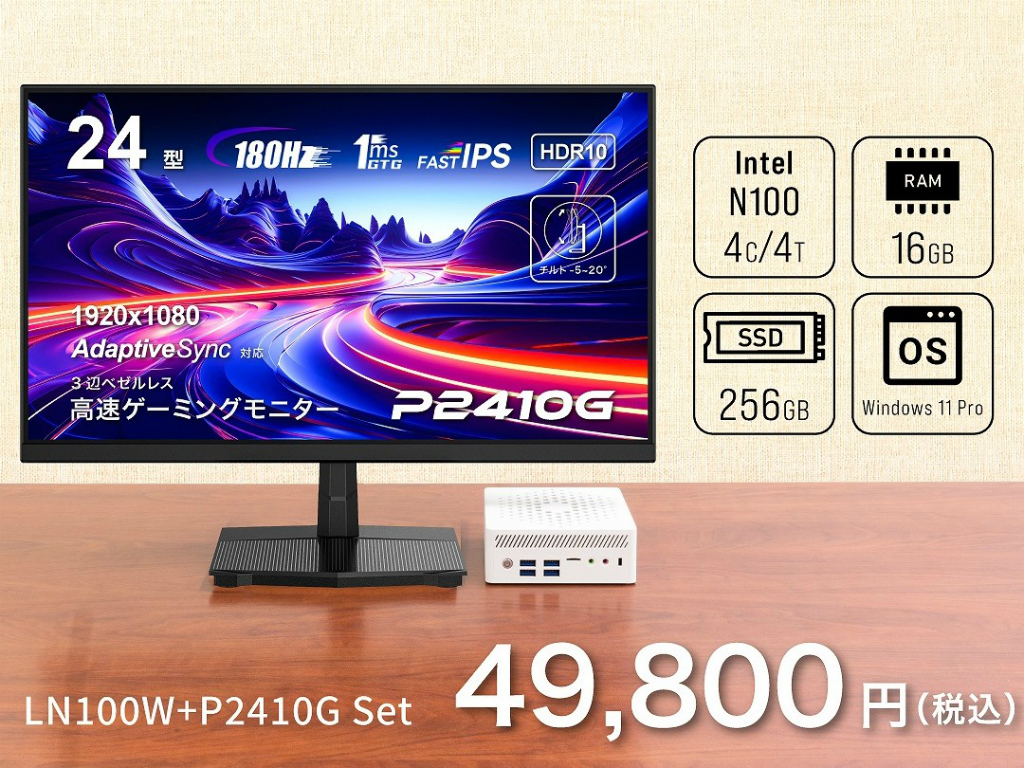 リンクス、N100搭載小型ファンレスPCとゲーミング液晶のセットモデル税込49,800円で発売