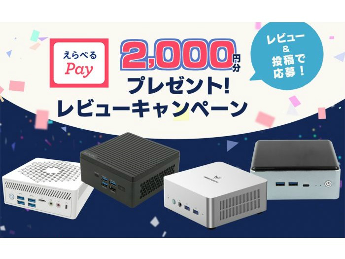 リンクス、2,000円分のえらべるPayがもらえる「ミニPCレビューキャンペーン」開催