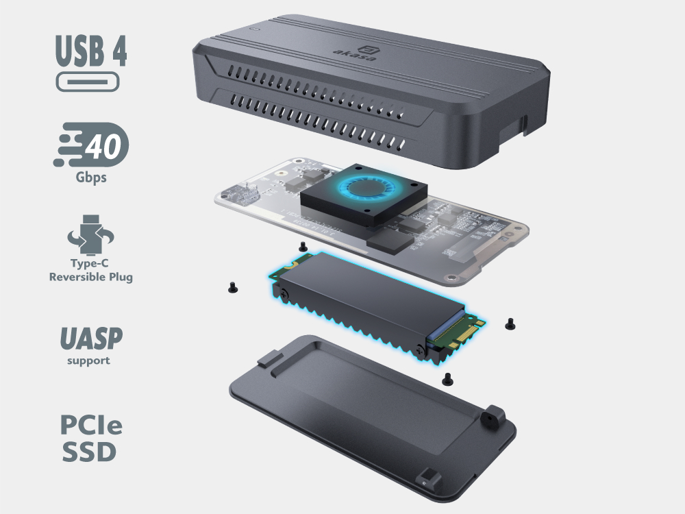 8,000rpmの冷却ファンを内蔵したUSB4対応NVMe M.2 SSDケースがAkasaから