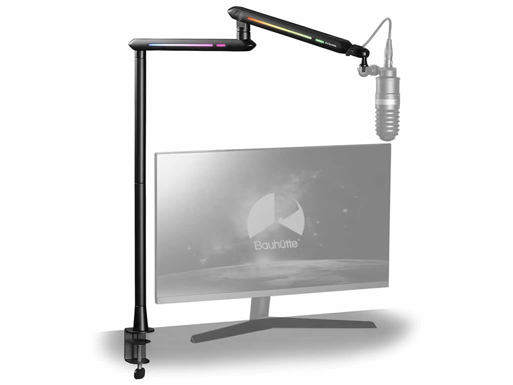 ディスプレイをまたいでセットできる、Bauhutte「トールマイクアーム」