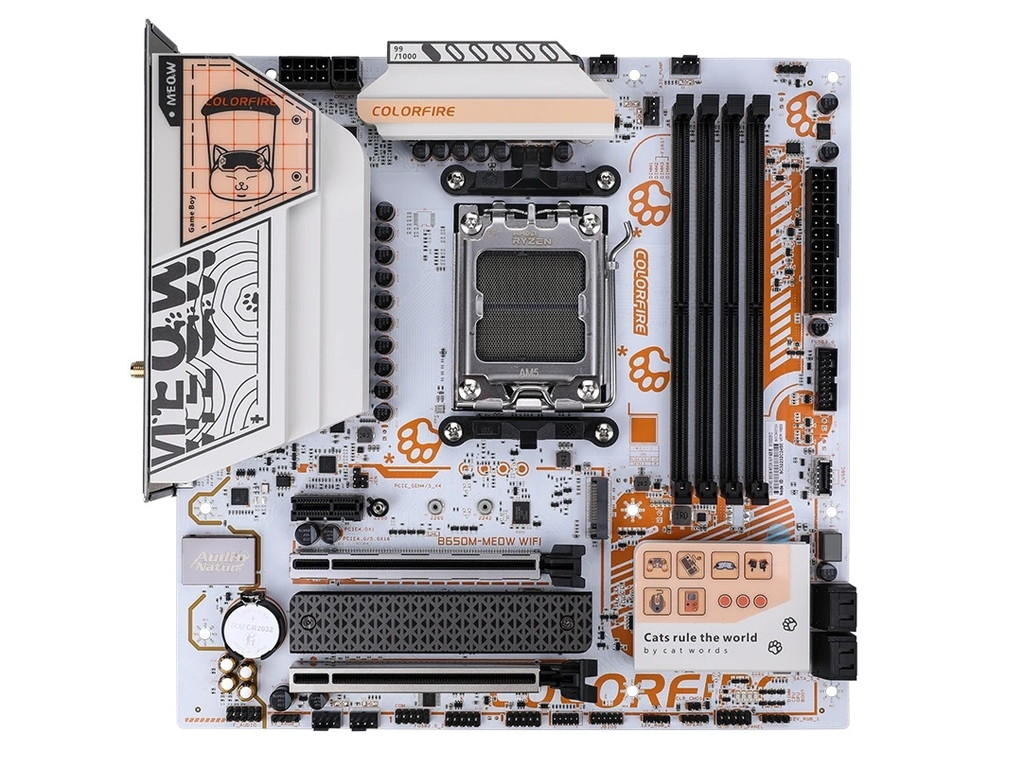 オレンジ色のニャンコをデザインしたマザーボード「COLORFIRE B650M-MEOW WIFI」