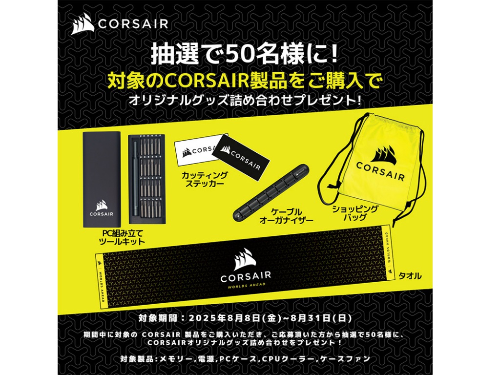 抽選でオリジナルグッズが当たる「CORSAIR 夏休みノベルティプレゼントキャンペーン」