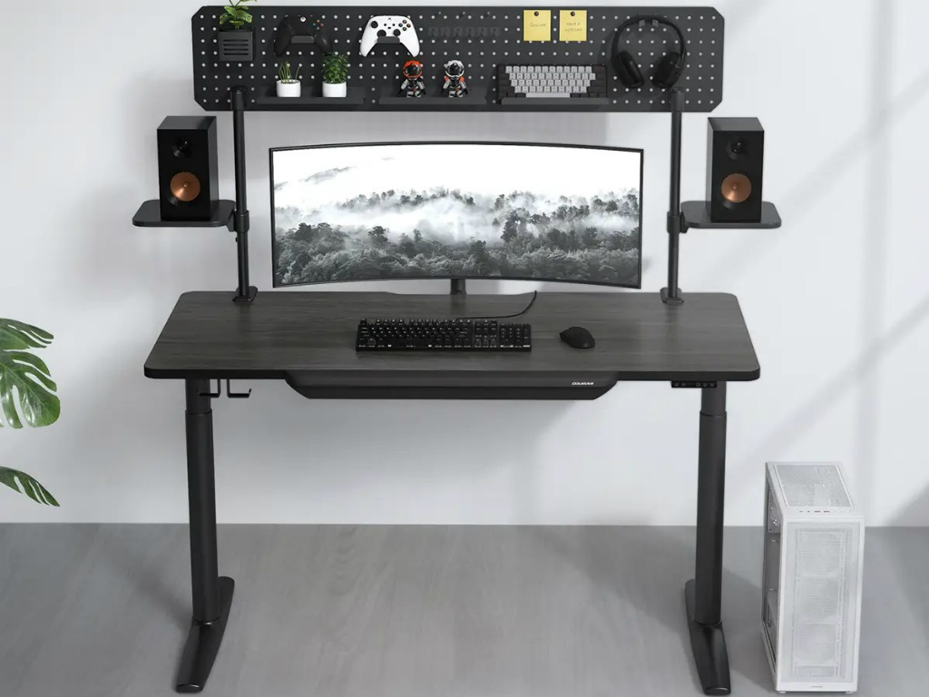 ペグボードやスピーカースタンド搭載の電動ゲーミングデスク、COUGAR「E-ODYSSEY」