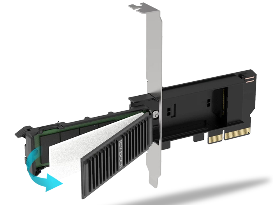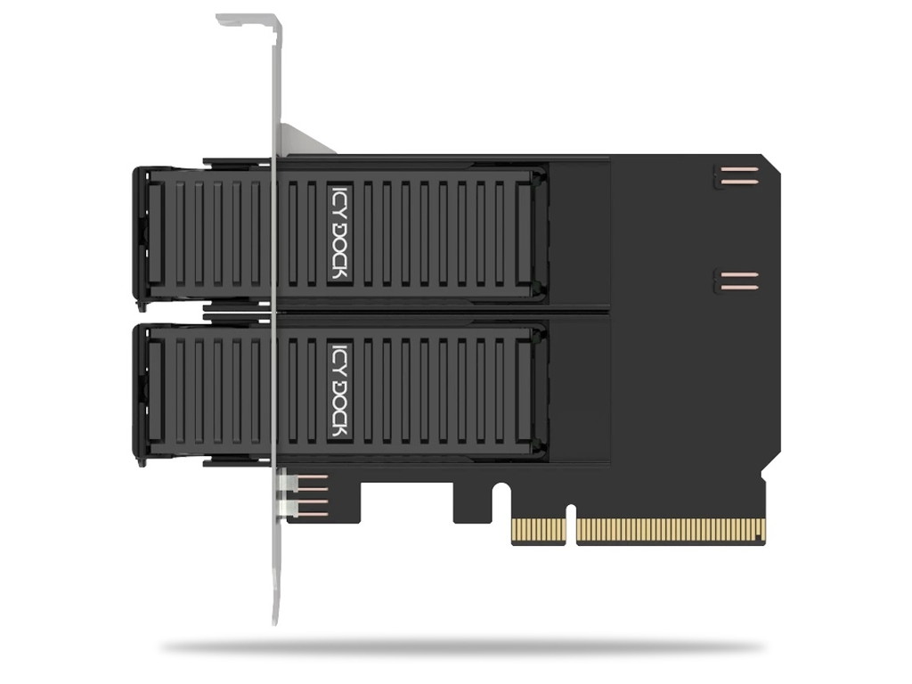 ICY DOCK、ヒートシンク付きM.2 SSD×2をリムーバブルドライブ化できる拡張カード