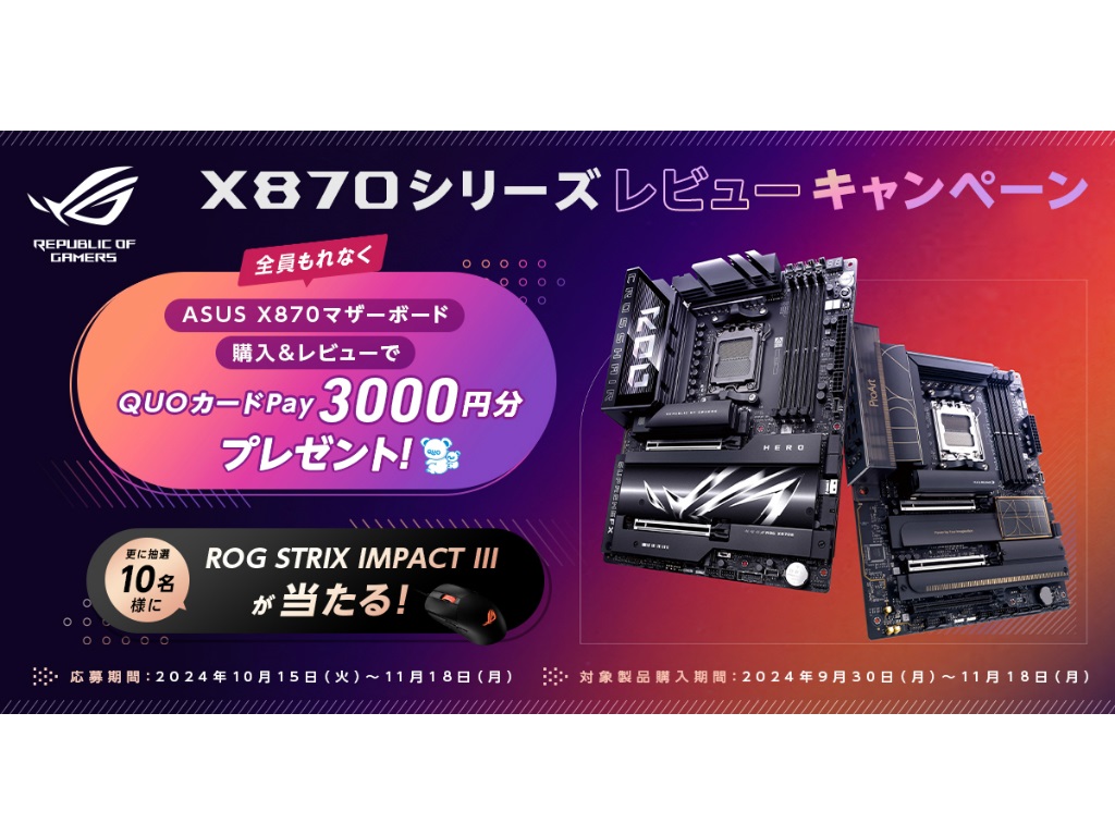 ASUS、QUOカードPayがもらえる「X870シリーズレビューキャンペーン」
