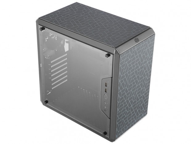 個性的なフロントパネルデザイン。"北欧デザイン”を思い起こさせるモダンな幾何学模様は、コンパクトな筐体によくマッチしている。スイッチ類やアクセスポート、ドライブベイ等を設けないフラットなフロントパネルだからこそできるカタチであり、面積の広い大型筐体ならきっとうるさく感じてしまう。小型筐体のみ通用する遊び心は、多くの自作派を惹きつけ、「MasterBox Q500L」最大の魅力にもなっている。
