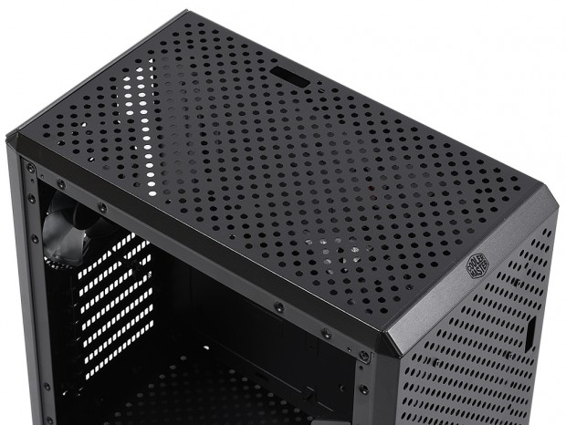 フロントパネル上部のエッジ中央にはCooler Masterのロゴマークで装飾。光の加減によってロゴが鮮明になるように塗装されており、しっかりと脇役たる仕事をわきまえている