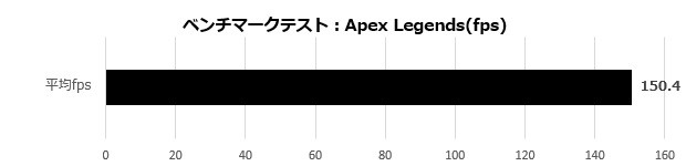 「スポットシャドウディテール」以外を「極」や「最高」、「高」に設定した状態で平均フレームレートは150fpsを記録した。1パーセンタイル点は100fps前後だったので、144Hzの張り付きプレイを狙うにはグラフィックス設定を大きく調節する必要があるが、バトルロイヤルでダントツ人気の「Apex Legends」をヌルヌル表示でプレイできるのは確実だ。