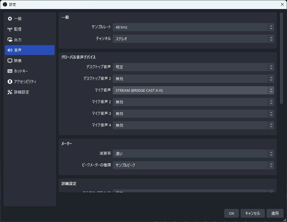 ドライバのインストールが完了した後に「BRIDGE CAST X」を接続すると、仮想のオーディオデバイスが自動的に認識される