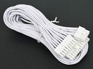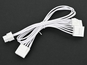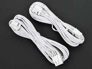| 主電源のATX 24pinケーブル。ケーブルはもちろんコネクタ部もホワイトに統一されている。ちなみにケーブル全長は約610mmだった | CPU補助電源は8pin×2で、ケーブルごとに1コネクタを備える。全長は約700mmだ |