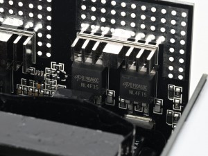 | PFC回路とLLC回路ともに、表面実装されたMOSFETと小型ヒートシンクを備える | |