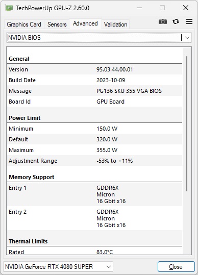 | Power Limitは定格比110.9%の最大355Wに設定されていた | |